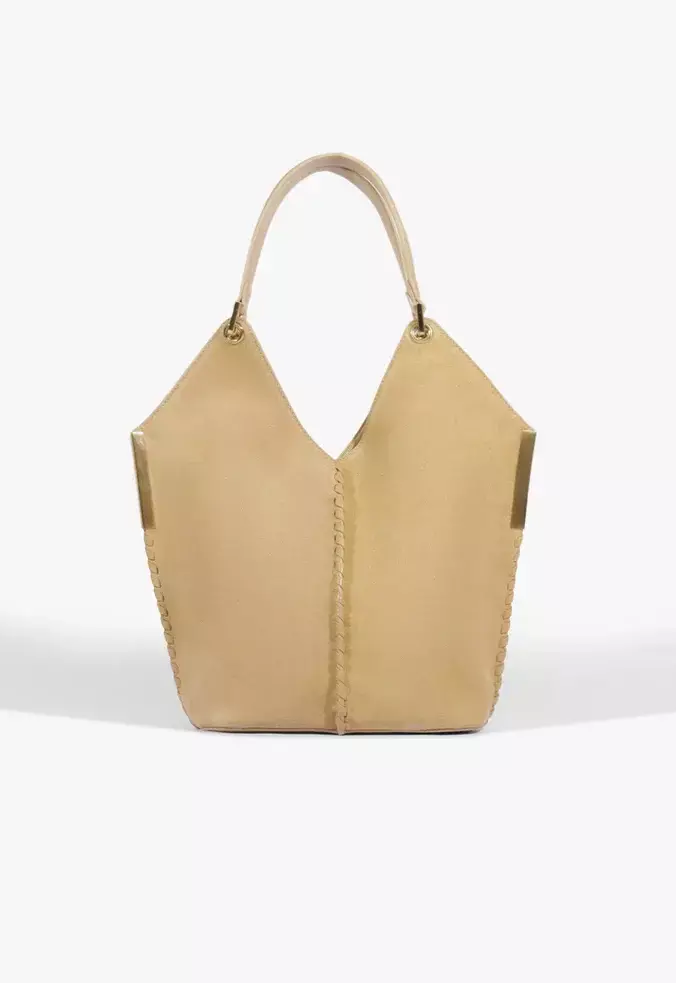 Essa bolsa bege tipo mini hobo é a definição de charme retrô com sofisticação! O design ganha personalidade com os metais personalizados Schutz na base da alça, criando um contraste elegante com a textura suave da camurça. O fechamento por botão imã garante praticidade, enquanto o visual com referências dos anos 70 adiciona um toque de estilo irresistível ao look. Ideal para compor produções estilosas com um ar boho-chic e urbano ao mesmo tempo! Comprimento da alça: 28cm | Largura da alça: 3cm