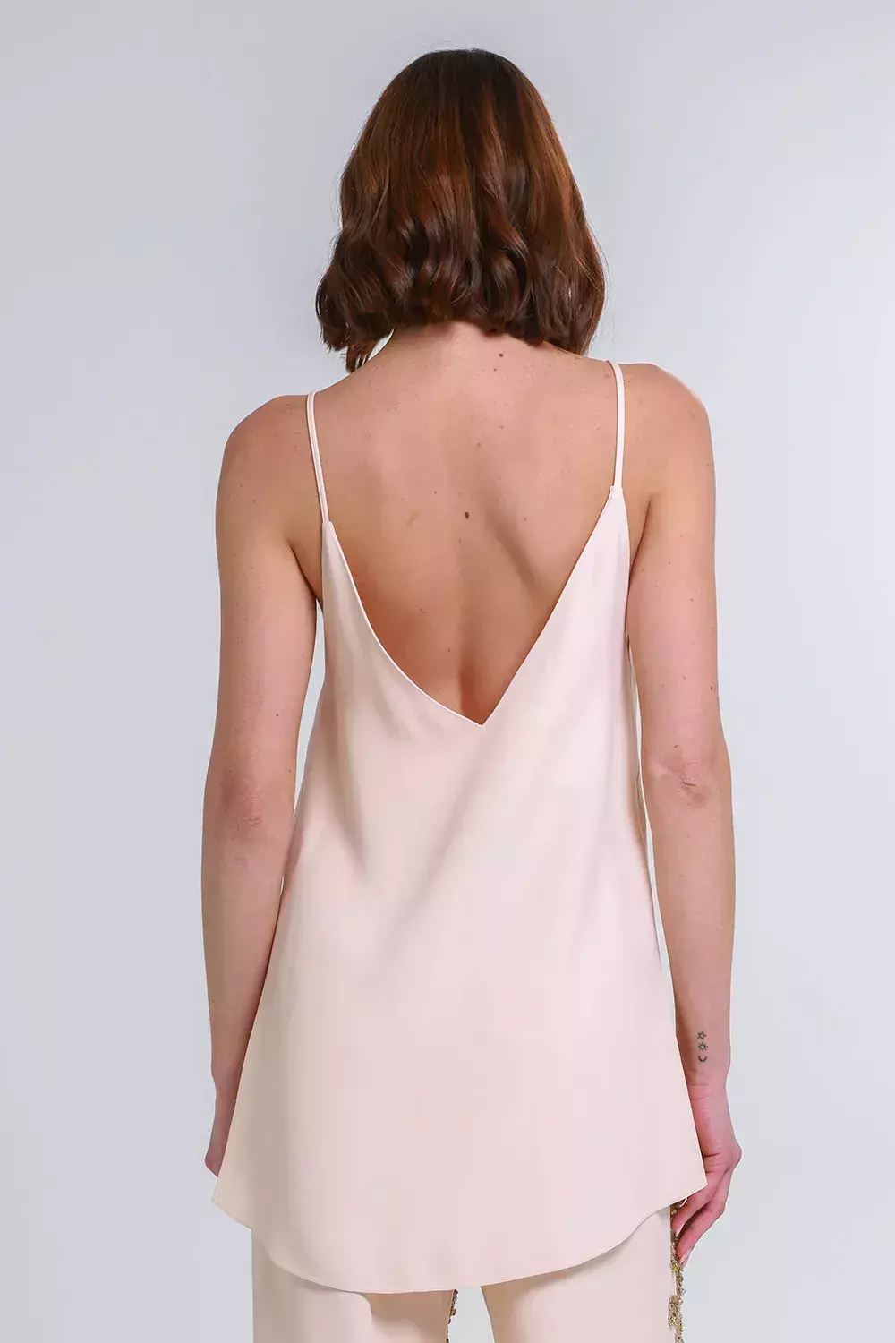 Confeccionado em crepe de acetato com viscose, o tecido nobre proporciona um caimento fluido e impecável. A peça apresenta silhueta levemente alongada e sutil detalhe em mullet, que transmite um visual cool para qualquer ocasião. A Regata Electra também possui decote profundo e V e fendas laterais, que trazem o frescor do contemporâneo em acabamento impecável.