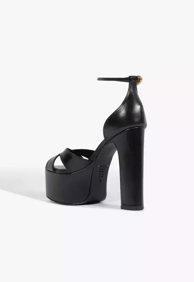 Com design imponente e cheio de estilo, esta sandália meia pata preta em couro traz o cabedal com tiras finas cruzadas sobre os dedos para um toque de leveza ao visual. O salto bloco alto e a plataforma frontal oferecem altura com conforto, enquanto o fechamento por fivela no tornozelo assegura o ajuste perfeito. Um modelo impactante e cheio de estilo para produções marcantes e sofisticadas!