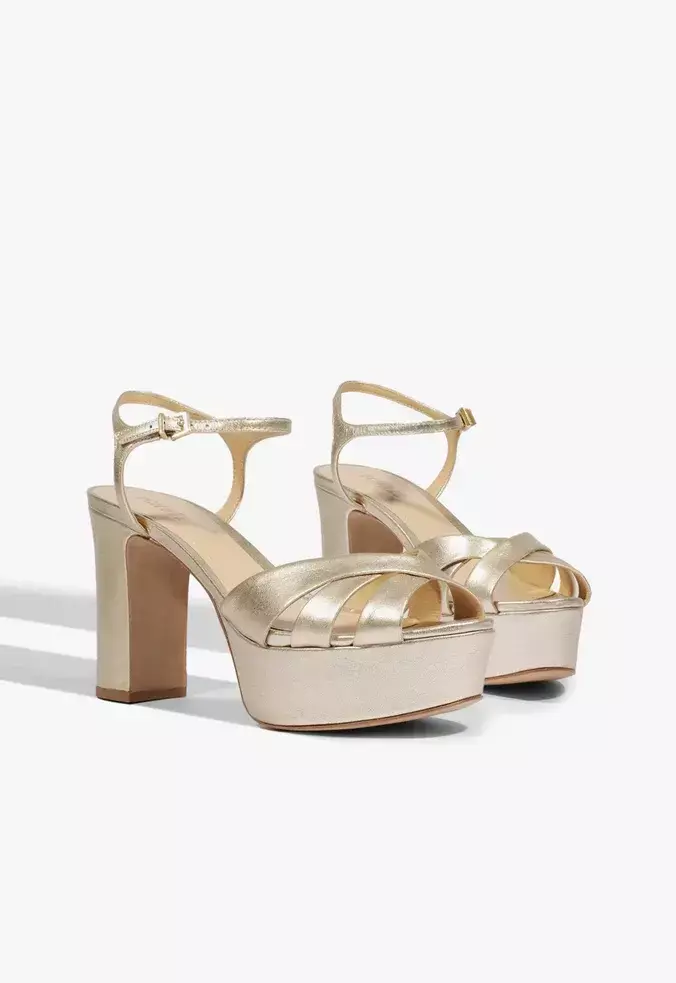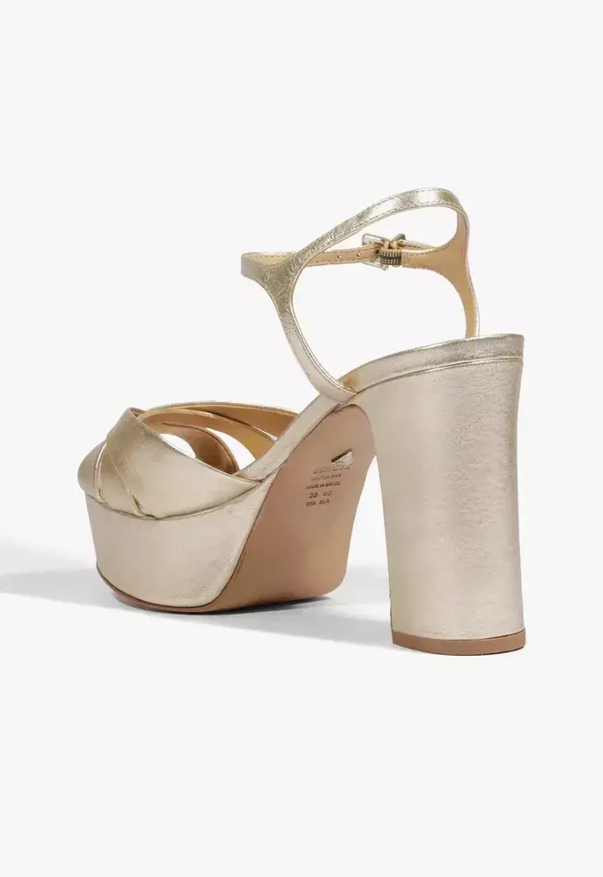 Combinação máxima de conforto, a dupla salto grosso + meia pata se transforma em um item deluxe com o acabamento metalizado - aposta perfeita para aquelas noites em que se quer dançar até o final da festa, mas o melhor é que com ela não vai nem precisar tirar a sandália para ficar confortável!