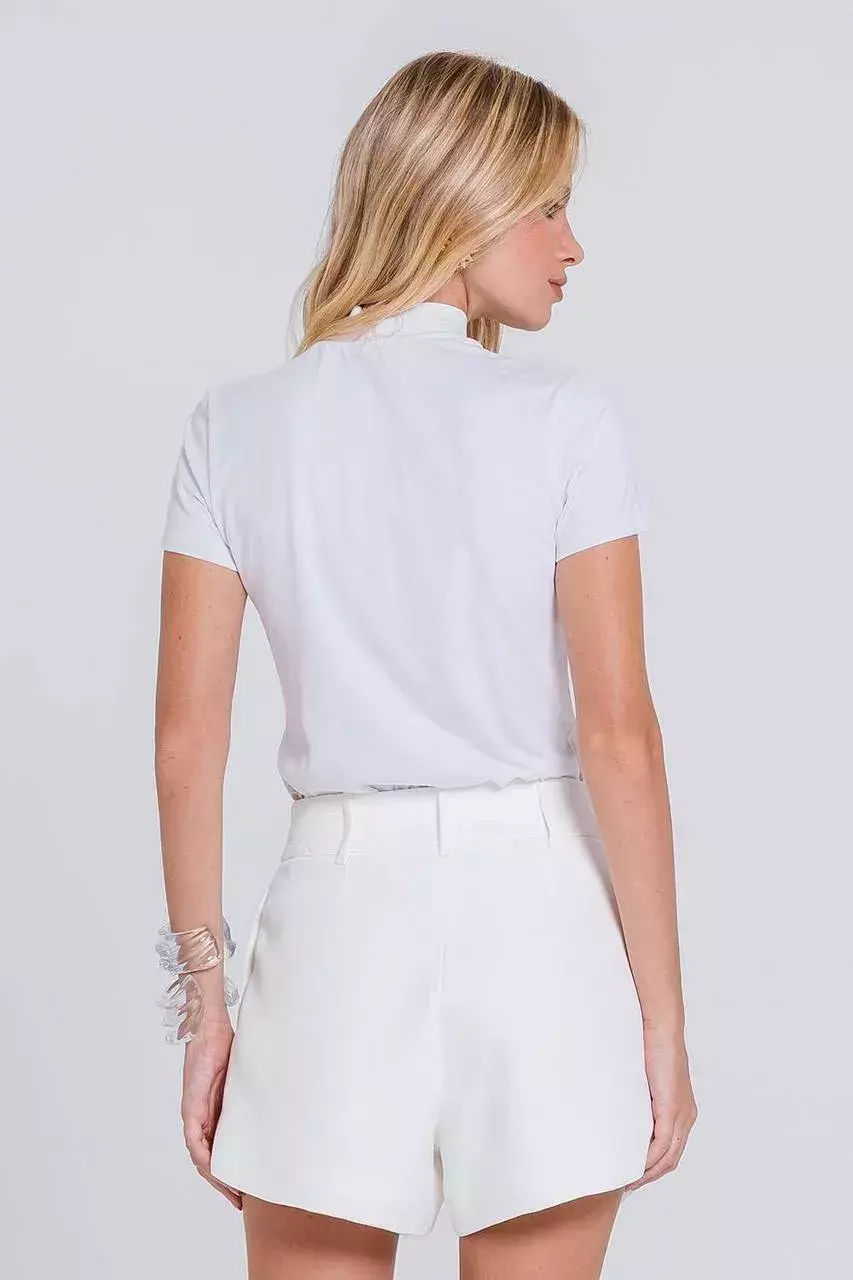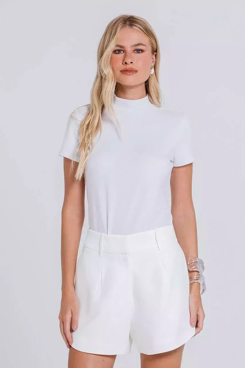 Confeccionado em tecido encorpado e estruturado, o modelo aposta em uma silhueta ampla com pregas frontais que adicionam movimento e elegância. O cós transpassado e pespontado cria textura sofisticada, enquanto o bolso faca reforça a praticidade do dia a dia. Finalizado com fecho em colchete e zíper, é um short versátil que combina facilmente com camisas, jaquetas ou blusas, elevando produções casuais a um nível refinado e atemporal.